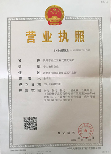 洪湖市正紅工業(yè)氣體充裝站是一家個(gè)人獨(dú)資企業(yè),所屬“武漢市翔云工貿(mào)有限責(zé)任公司”。 公司稅號(hào):91421083881781715B,成立于2002年,占地面積10畝,地處洪湖市政府及洪湖景區(qū)附近,環(huán)境優(yōu)美,地理位置優(yōu)越,主要為洪湖市區(qū)及周邊工業(yè)園及企業(yè)提供氣體服務(wù),主營(yíng)氣體:氧氣、氬氣、氮?dú)狻⒍趸?、乙炔氣。個(gè)別氣體的充裝銷(xiāo)售,及其它各種特殊氣采購(gòu)、銷(xiāo)售。